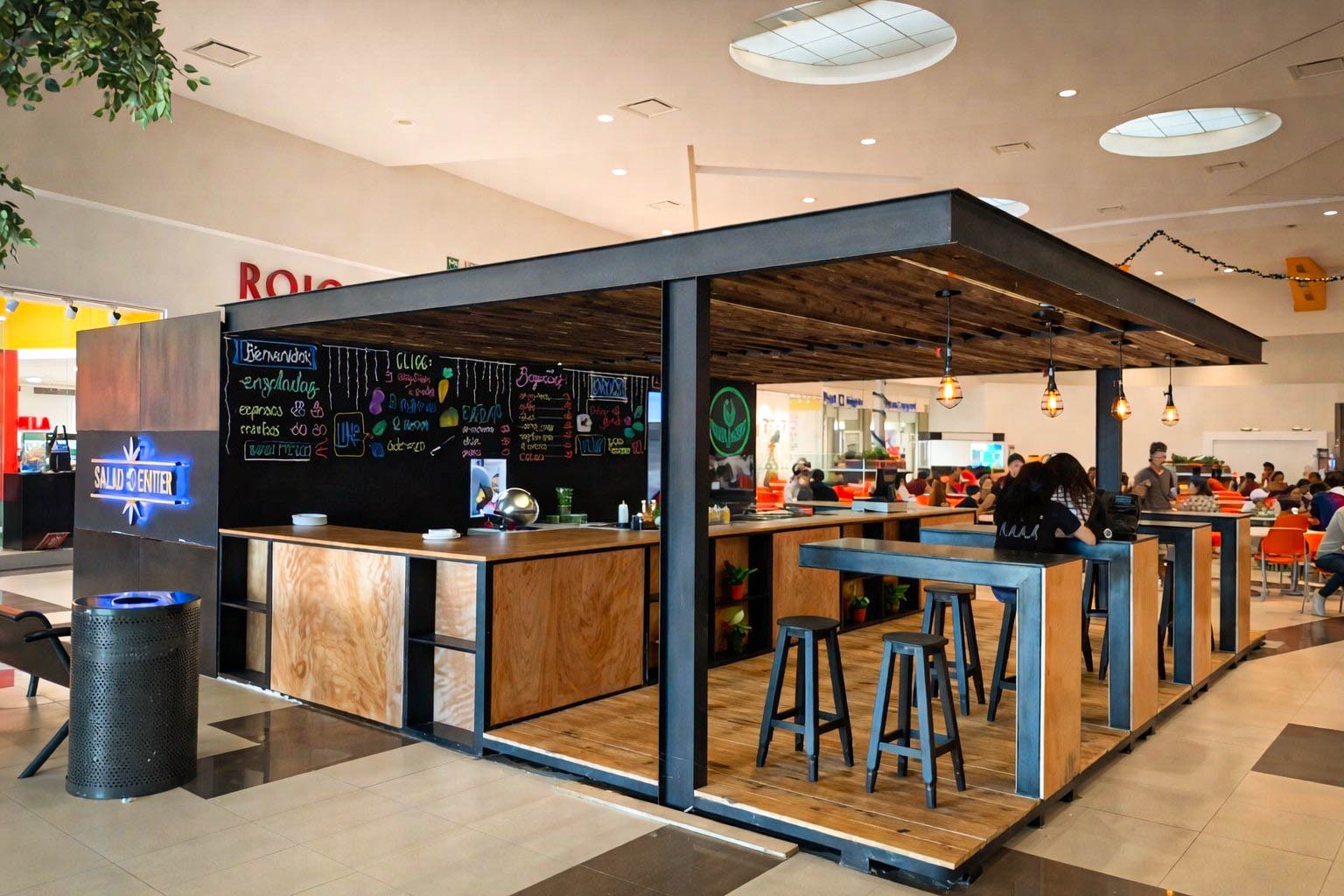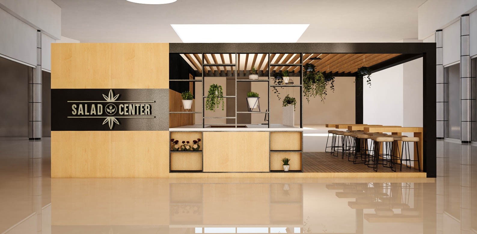 SALAD CENTER es un local comercial donde el reto es concentrar todo lo necesario para poder despachar independientemente; una cocina con todos los equipos necesarios, barra fría y caliente, además de una zona de comensales en pocos metros cuadrados.